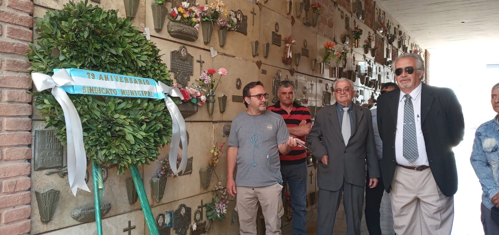 Luego de la misa, se llevó una corona y ofrenda floral al pabellón municipal donde descansan los restos de nuestros queridos compañeros. Franco Eneldo dirigió las palabras recordatorias y el reconocimiento a todos aquellos que con tanta pasión lograron mantener y sostener las bases de un sindicalismo honesto y dedicado a conquistar derechos para todos aquellos Trabajadores Municipales de toda la provincia de San Juan.