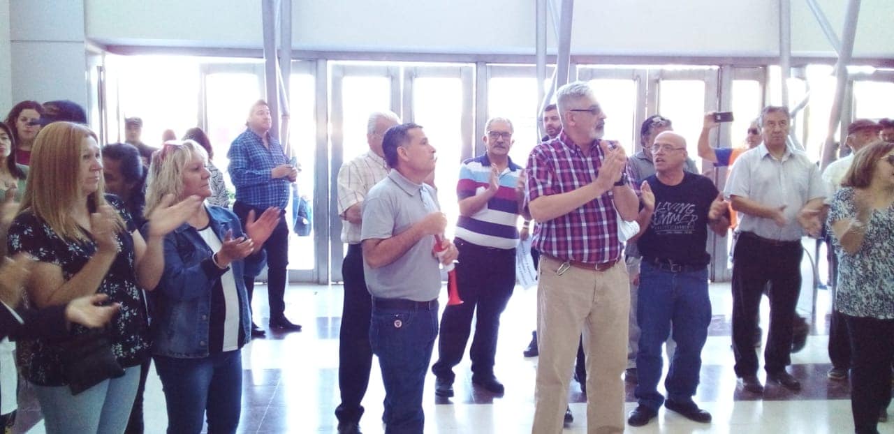 Las manifestación pacífica se trasladó al subsuelo, haciendo ruidos de aplausos, y cánticos para ser escuchados. Hasta la misma oficina del interventor fueron pero lamentablemente dijeron que no se encontraba (poco creíble) y que no había nadie, nadie para dar una explicación y atender a los trabajadores afiliados.