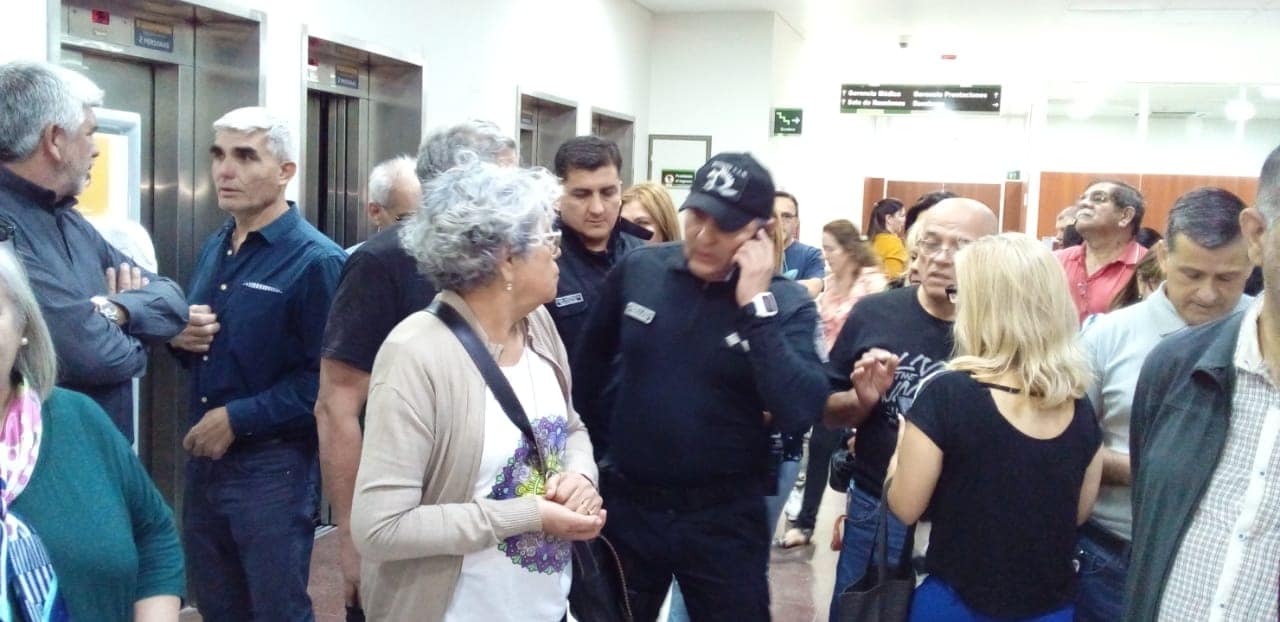 El Dr. Antonino D'Amico hizo un discurso explicando la situación y se explayó en los justos reclamos por recibir una atención como corresponde, de acuerdo a las cifras millonarias que obtienen con los descuentos a todos los empleados.