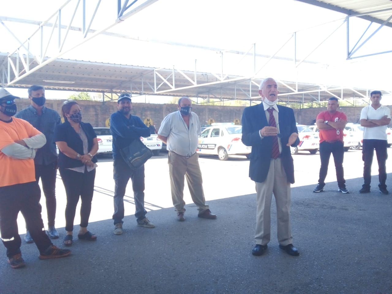 El tesorero del SUOEM Hugo Manchini, Secretario Gremial Estaudino Olivares y Delegados Gremiales, explicando e informando, acerca de la suspensión de la paritaria prevista para el día martes 30 de noviembre, como consecuencia del recurso de amparo presentado por UPCN.