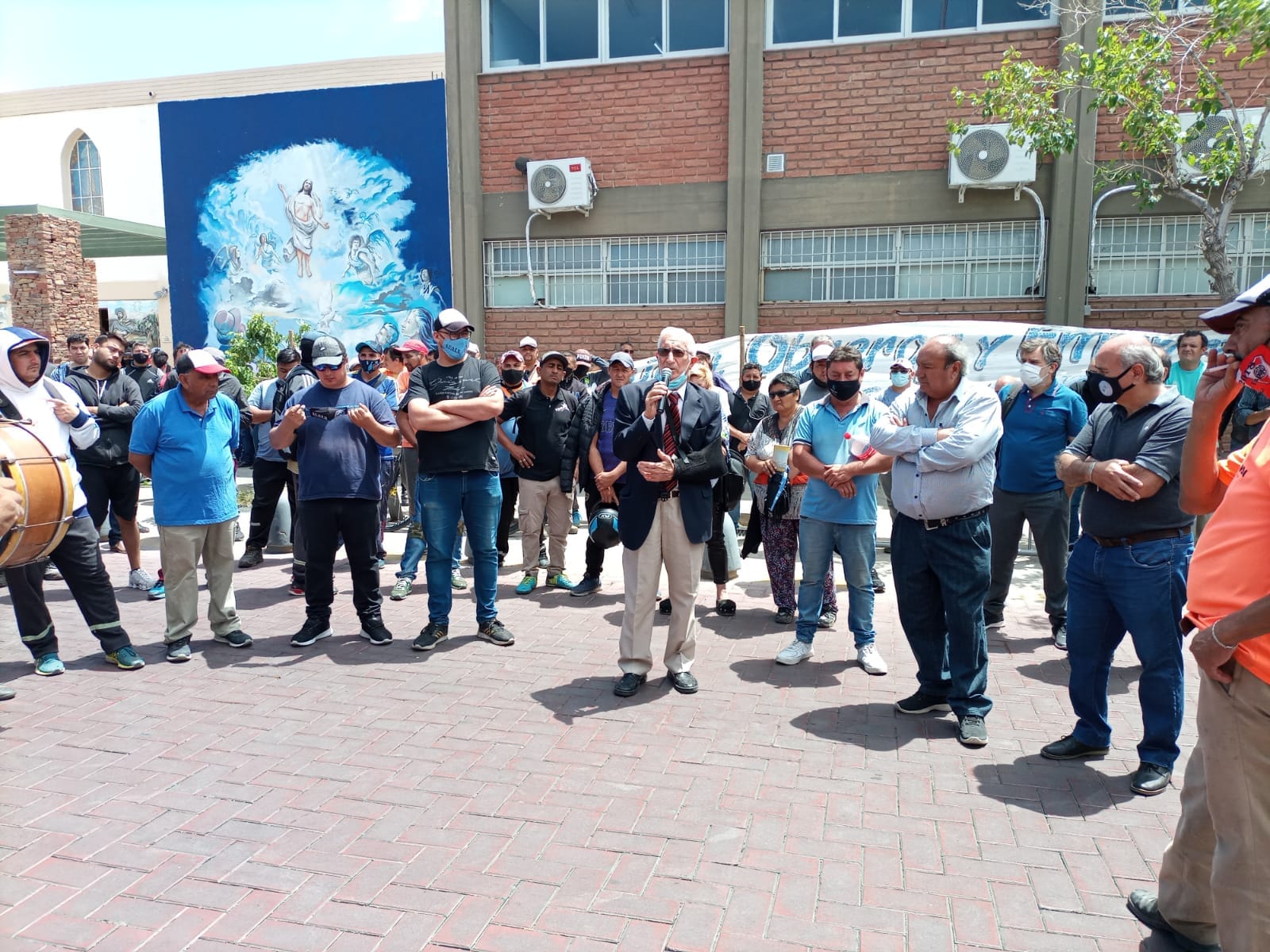 El Secretario Adjunto Gustavo Carrera, el Secretario Gremial Estaudino Olivares y Hugo Manchini Tesorero del SUOEM dirigen palabras a los trabajadores y a la comunidad. Gran cantidad de compañeros se dieron cita para participar de esta importante asamblea.