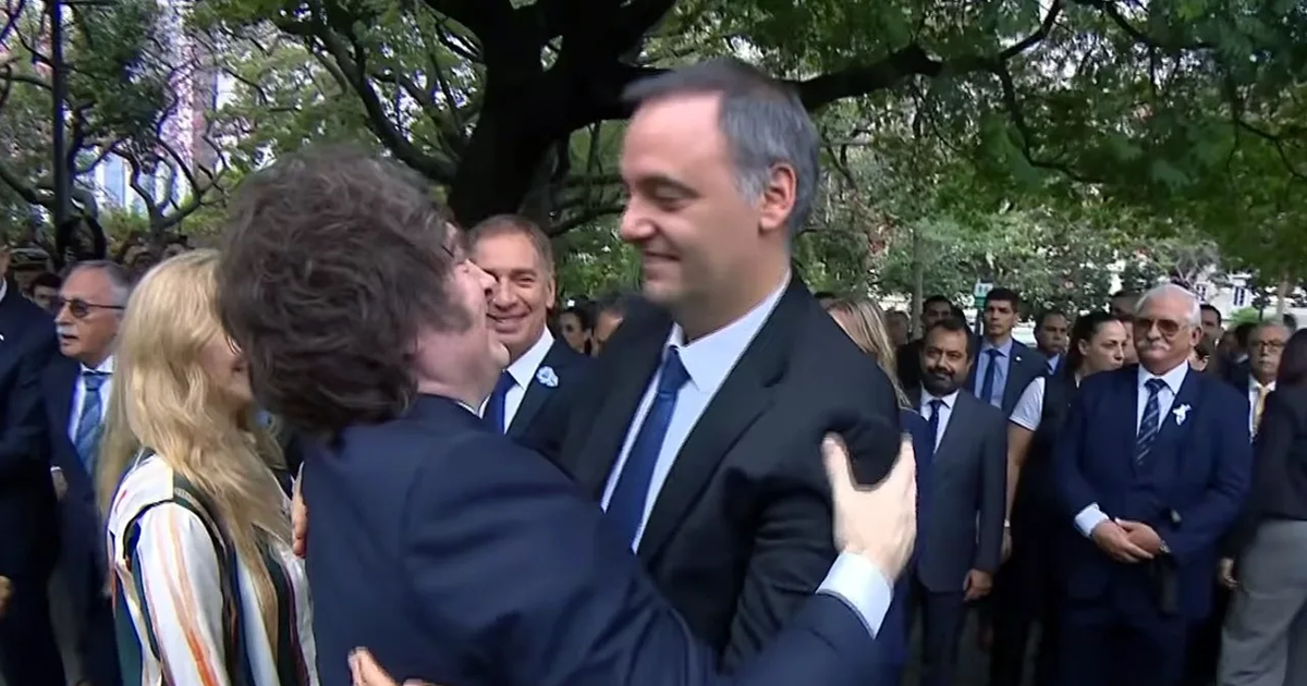 Apoyo total: el abrazo que le dio Milei a Adorni en el acto por Malvinas