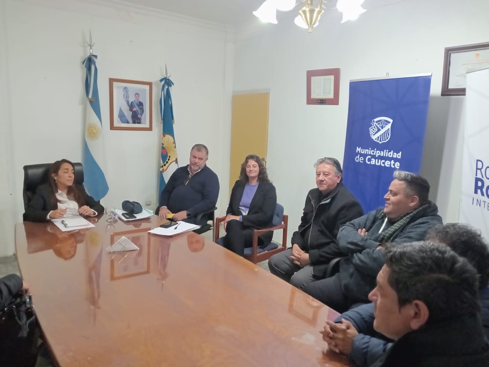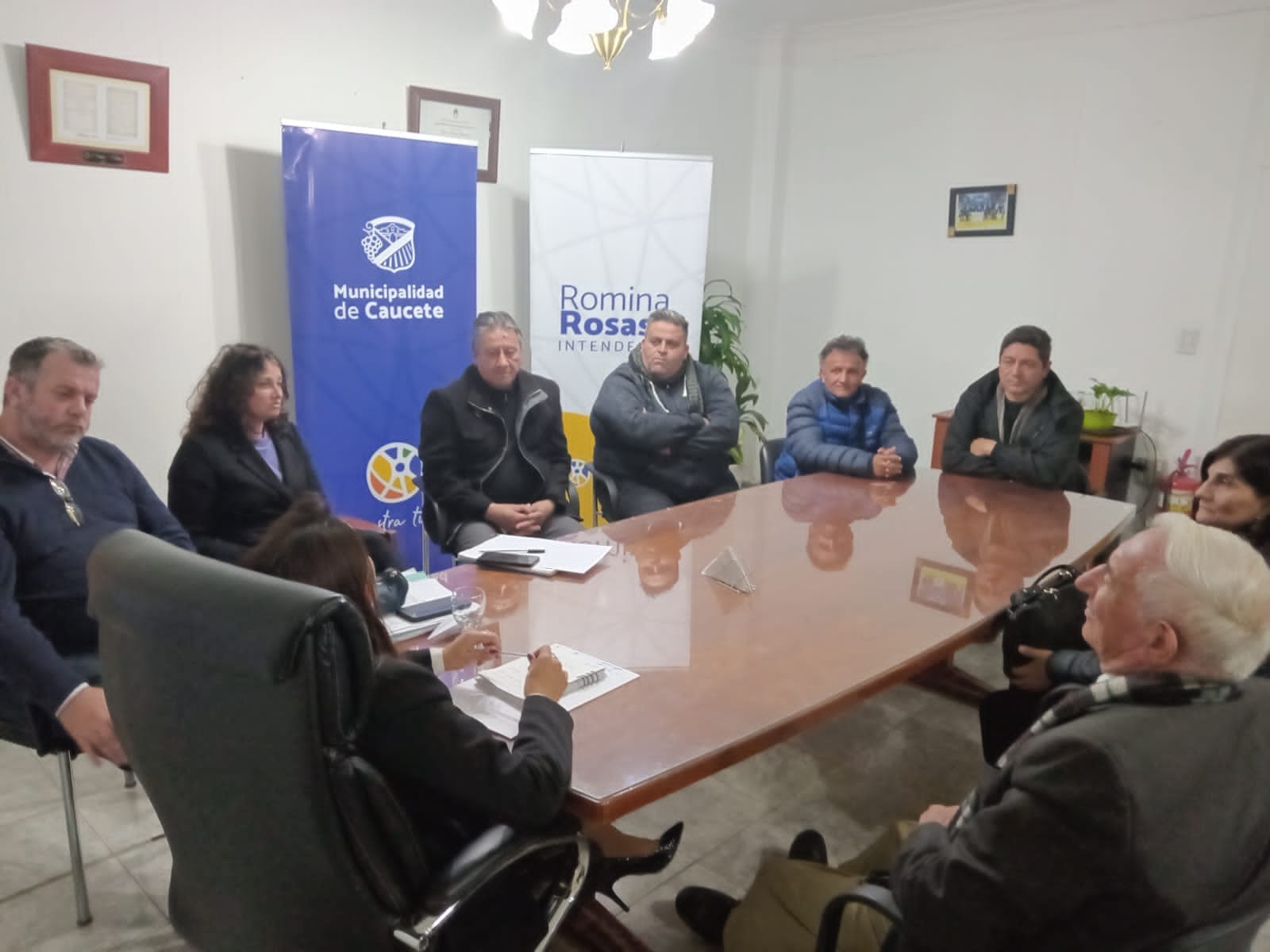 El día viernes 25 de agosto en la Municipalidad de Caucete se produce la reunión entre la intendente Sra. Romina Rosas, acompañada de sus funcionarios y la comitiva del SUOEM encabezada por el Secretario General Dr. Antonino D'Amico, Cristian Castán, Blanca Guaquinchay, Jorge Balderramo y Delegados gremiales del departamento.