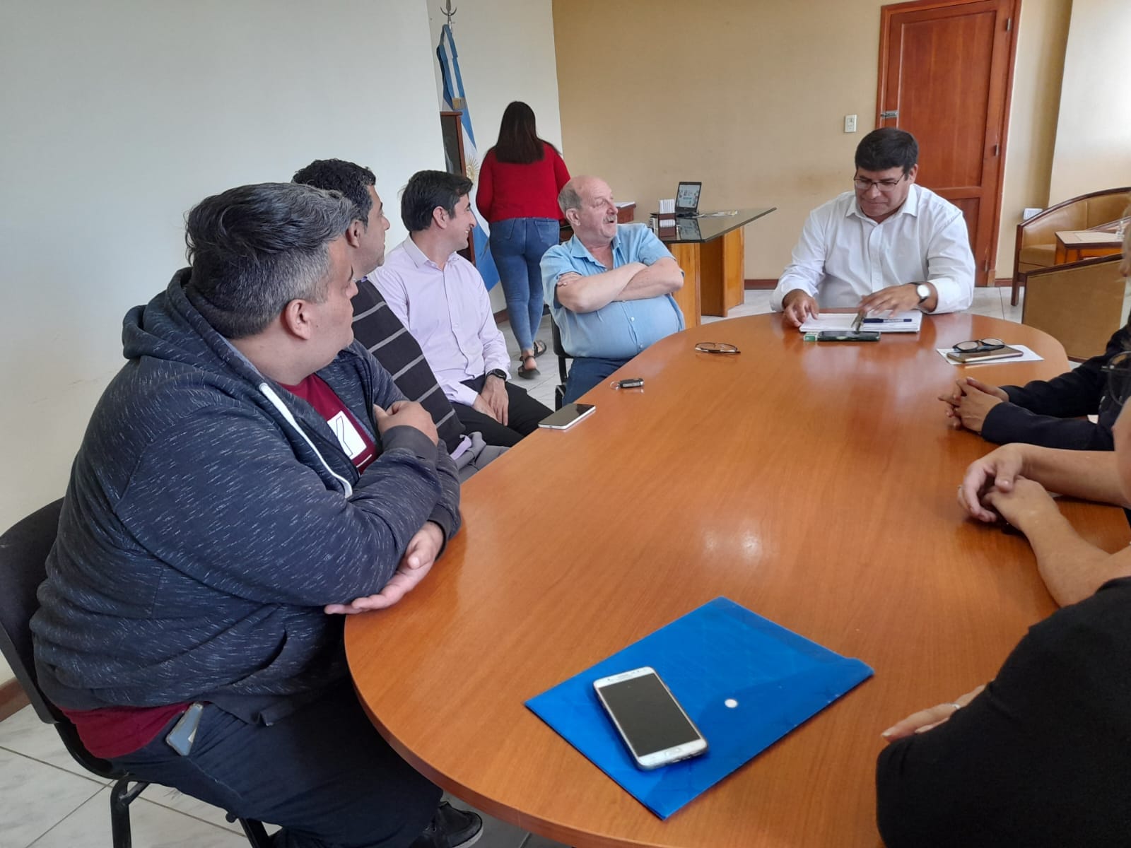 Una comitiva del Sindicato Municipal encabezada por el Secretario Adjunto Dr. Guillermo Leonardi, el Secretario de Deporte y Turismo Cristian Castán, los vocales Miriam Oyola y Laura Alé, junto a los Delegados: Montero Jorge, Andrea Flores, Aguilera Cristian, Ogas Omar. Estuvieron reunidos con el Intendente Daniel Banegas, el Secretario de Gobierno Lucio González y la Asesora Hilda Sepúlveda.