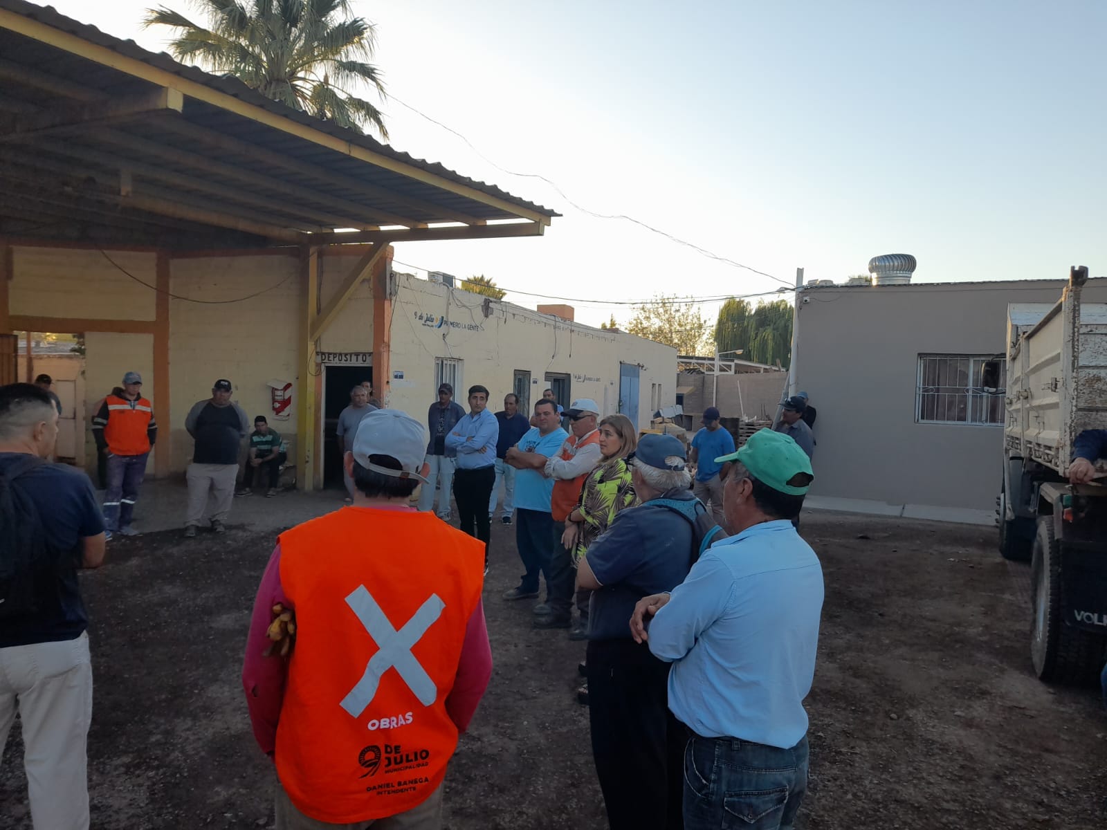 En base a lo que se había dialogado el pasado jueves con el intendente Daniel Banegas, y a la espera de una respuesta a la solicitud del pago consistente en un 17% de aumento y un bono de 35 mil pesos, dispuesto por la provincia, se reunieron los compañeros municipales de 9 de Julio en Asamblea, esperando una respuesta de parte de la parte del Ejecutivo.