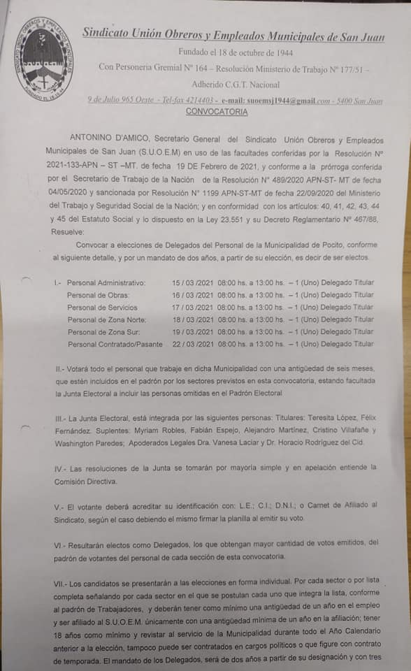 Aquí publicaremos el orden cronológico de las elecciones de delegados del SUOEM en el Departamento de Pocito.