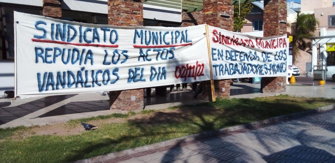 Miércoles 05/04/23 en la Municipalidad de Rawson siguen las banderas levantadas por varios motivos: el tema del Decreto de Funciones y también el expediente acerca del pago de lo descontado por los supuestos días de paro, el 5% de antigüedad aprobado por Cámara de Diputados, entre otros temas.