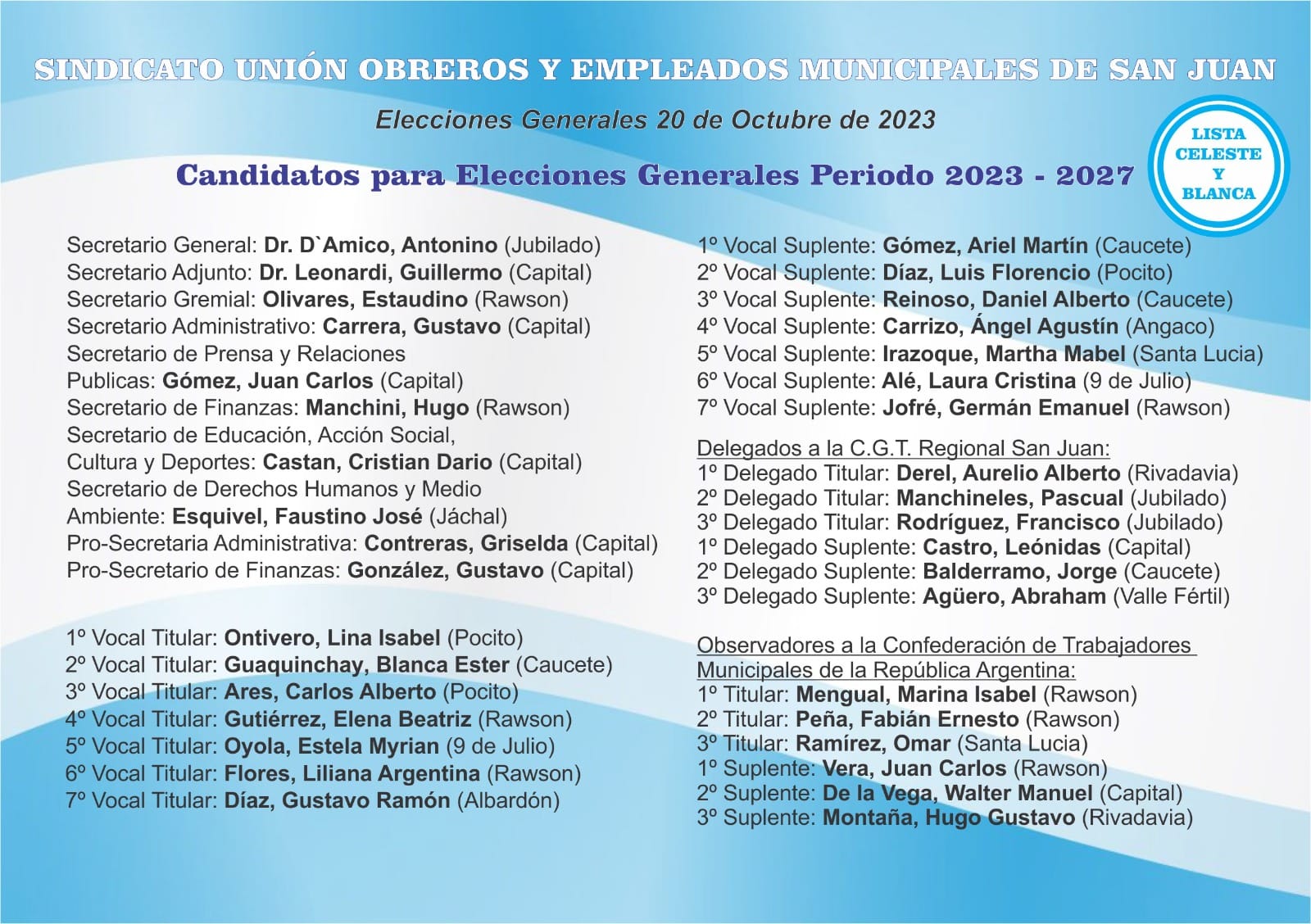 Elecciones de autoridades en el SUOEM para el periodo 2023 - 2027. 20/10/23