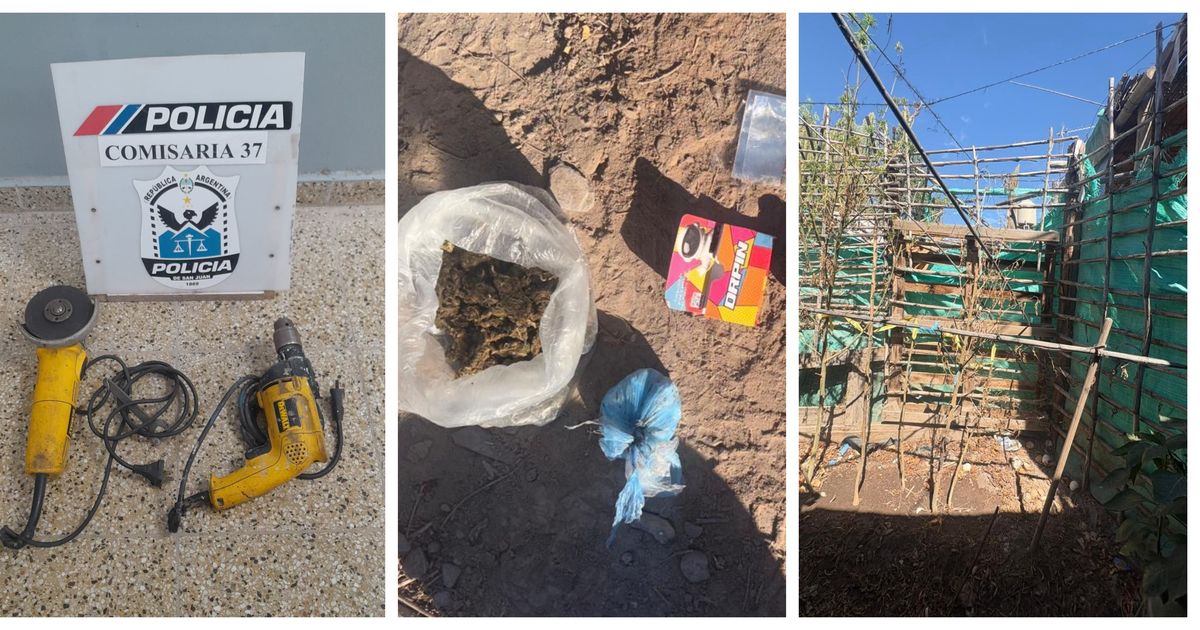 Seis allanamientos en Caucete: secuestran droga, motos y elementos robados